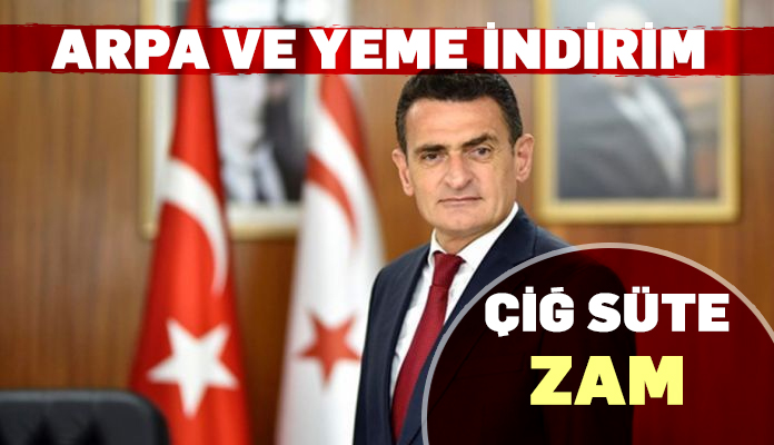 Oğuz, çiğ sütün kilosunun 9,5 TL’den 10 TL’ye çıkarıldığını, Binboğa’nın 430 TL olan yem fiyatını 410 TL’ye indirdiğini, hükümetin sübvansesiyle 6 TL olan arpanın 2 Ağustos Salı’dan itibaren 5 TL’ye satılacağını duyurdu.