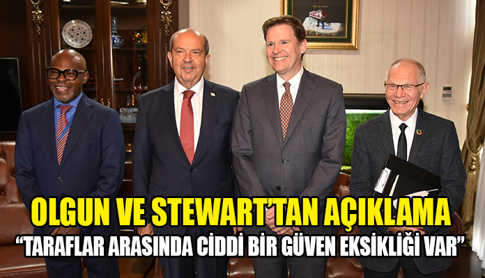 Olgun, Stewart’a Kıbrıs’ta ortak zeminin oluşabilmesi ve sürdürülebilir bir anlaşma için tarafların denkliğinin sağlanması, bunun da ancak tarafların egemen eşitliklerinin ve eşit uluslararası statülerinin teyidiyle mümkün olabileceğini anlattıklarını kaydetti.