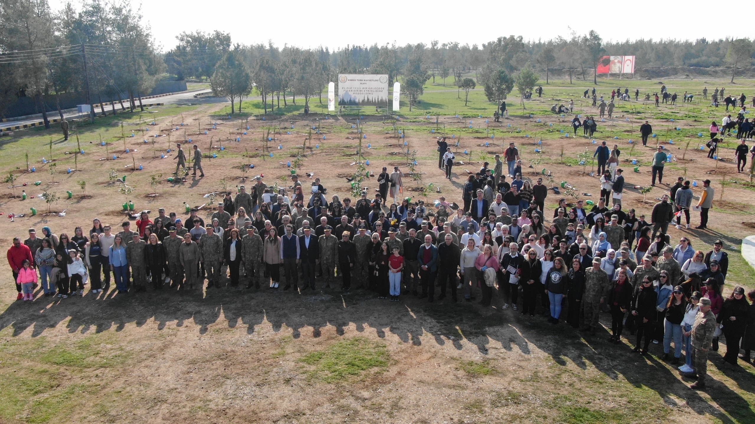 KKTC’de “Bir Milyon Fidan” hedefi ve “El Ele Yeşil Bir Geleceğe” sloganıyla, doğal dengenin korunması, ağaç ve doğa sevgisinin geliştirilmesi maksadıyla yapılan etkinlik, toplu fotoğraf çekimiyle tamamlandı.