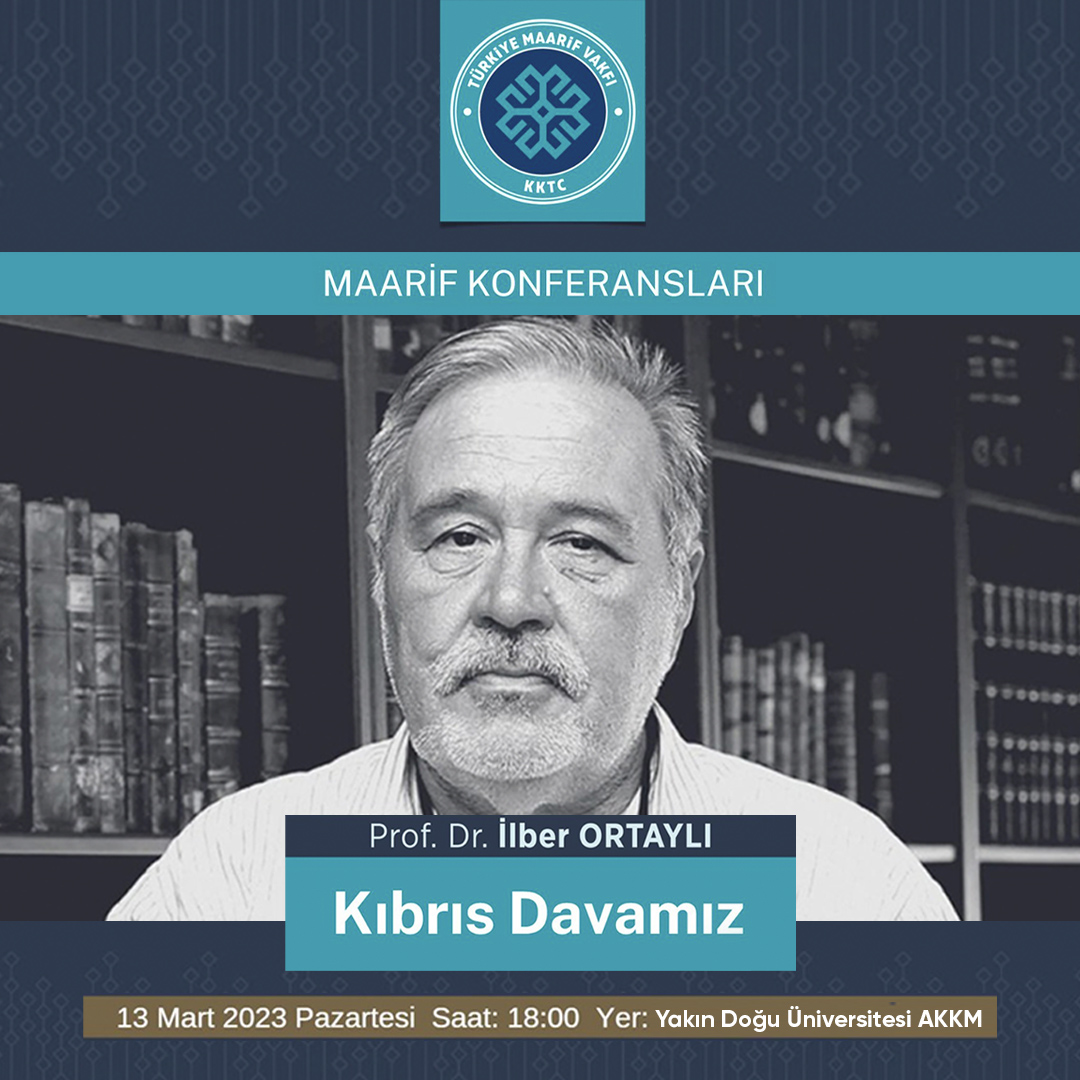 Prof. Dr. İlber Ortaylı, “Maarif Konferansları” kapsamında Yakın Doğu Üniversitesi Atatürk Kongre ve Kültür Merkezi’nde “Kıbrıs Davamız” söyleşisi düzenliyor.