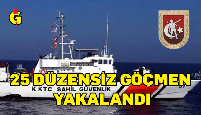 Güvenlik Kuvvetleri Komutanlığı Basın Bürosu’ndan yapılan açıklamaya göre, KKTC Sahil Güvenlik Komutanlığı personeli tarafından dün saat 23.00 sularında, Ötüken bölgesi açıklarında icra edilen denetim ve devriye görevi esnasında, yasa dışı yollarla ülkeye girmeye çalışan 25 düzensiz göçmen tespit edilerek, yakalandı.