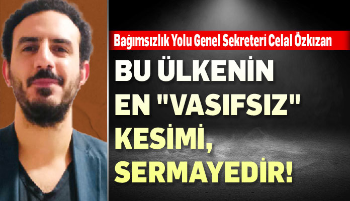 Bu ülkenin en “vasıfsız” kesimi, sermayedir diyen Özkızan, “doğayı iliğine kadar sömürüp ülkenin altyapısını tarumar eden, ucuz ya da kayıt dışı işgücü ile demografik yapıyı ve toplumsal dokuyu mahveden, en temel çalışma yasalarına dahi hiçe sayıp özel sektörü kanun dışı vahşi bir hayata döndüren, ülkenin tüm kaynaklarını ve servetini bir avuç elde toplatıp sonra da en temel vergisini bile vermeden ülkeyi sefil ve yoksul bırakan sermayedir” ifadelerini kullandı.