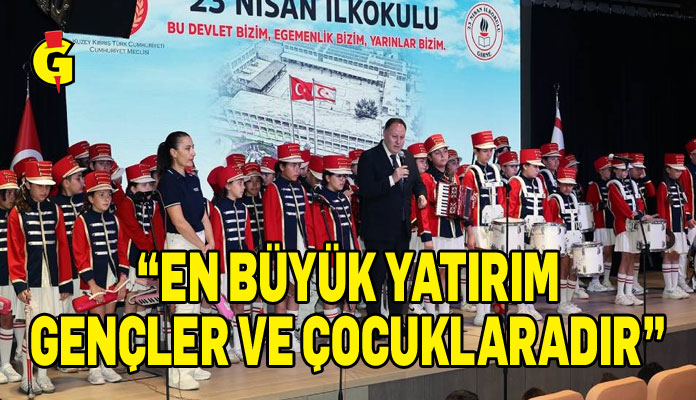 Ellerinde tuttukları Kuzey Kıbrıs Türk Cumhuriyeti ve Türkiye Cumhuriyeti bayraklarına sahip çıkarak geleceği yaşayacaklarını ifade eden Öztürkler, “Zaman geçer ama bir ülkenin en büyük yatırımı çocuklarına ve gençlerine yaptığı yatırımdır” dedi.
