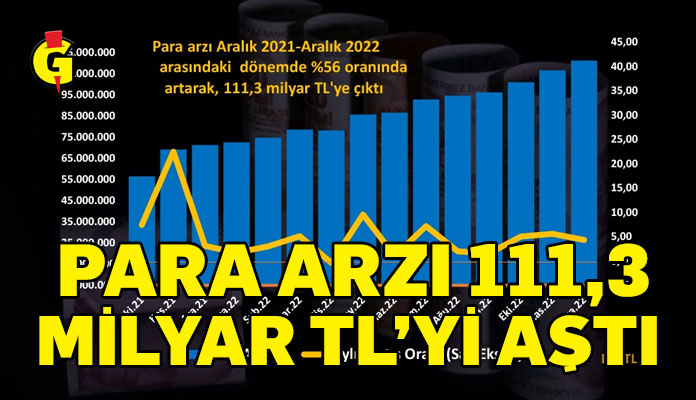 Aralık 2022 sonu itibarıyla 111 milyar 344 milyonu geçen para arzı tüm zamanların rekor seviyesinde