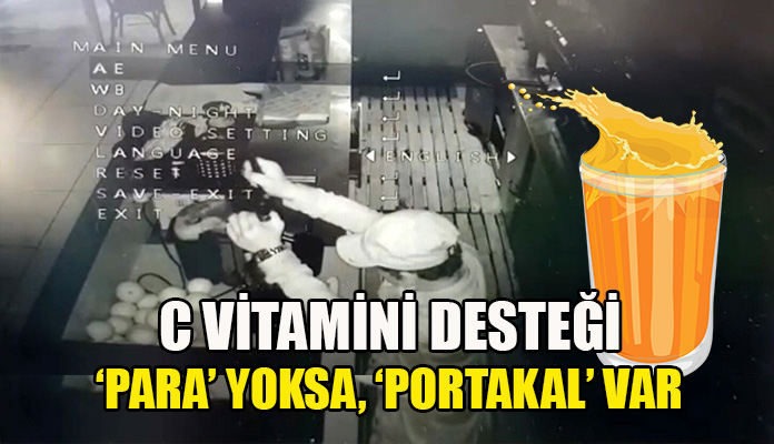 Kapıyı aralayarak ve korkarak içeriye giren hırsızın, dışarıda ve içeride dakikalar geçirdiğini gördü. Masayı, çekmeceleri ve kasayı karıştırdığını da gören Şahin görüntüleri izlemeye devam ettiğinde hırsızın tezgah bölümüne giderek eline aldığı portakalla meyve sıkacağının başına geçtiğini gördü. Birkaç portakalı sıkacağa yerleştirerek suyunu bardağa sıkan hırsız, içtikten sonra büfeden ayrıldı. Yaşananlar ise güvenlik kameralarına saniye saniye yansıdı.