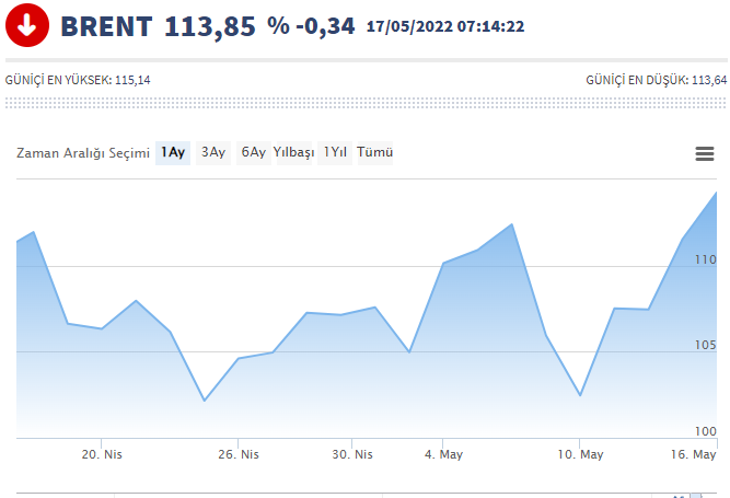 ABD ham petrolü 114 doların altını görürken, Brent petrolde işlemler 114 doların biraz üstünde gerçekleşti.
