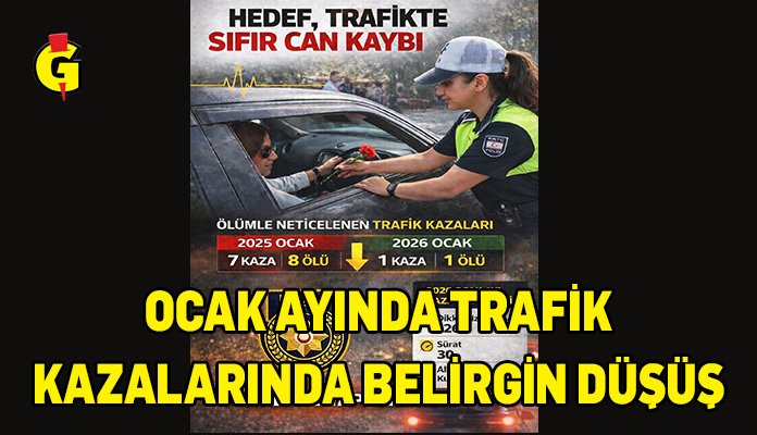 PGM Basın Subaylığı’nın açıklamasına göre, 2025 yılının Ocak ayında 7 ölümlü trafik kazasında 8 kişi yaşamını yitirirken, 2026 yılının Ocak ayında bu rakam 1 ölümlü kaza ve 1 can kaybı olarak kayıtlara geçti.