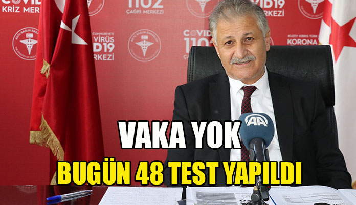 Sağlık Bakanı Dr. Ali Pilli, son 24 saatte yapılan test sayısının 48 olduğunu, pozitif bir vakaya rastlanmadığını açıkladı.