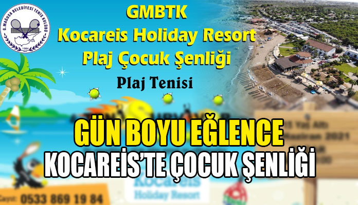 GMB Tenis Kulübü Kocareis Holiday Resort işbirliği ile 27 Haziran 2021 tarihinde Plaj Çocuk Şenliği düzenliyor.
