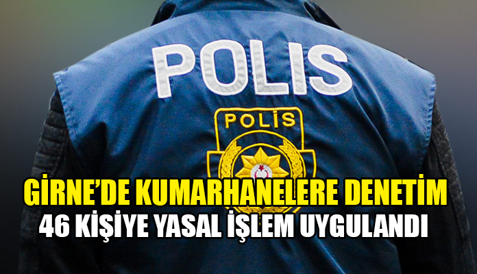 Girne’de faaliyet gösteren dört ayrı kumarhanede Girne Polis Müdürlüğü ekipleri tarafından dün gerçekleştirilen denetimler kapsamında, kumarhaneye girmeleri ve bulunmaları yasak olan toplam 46 kişi tespit edildi.