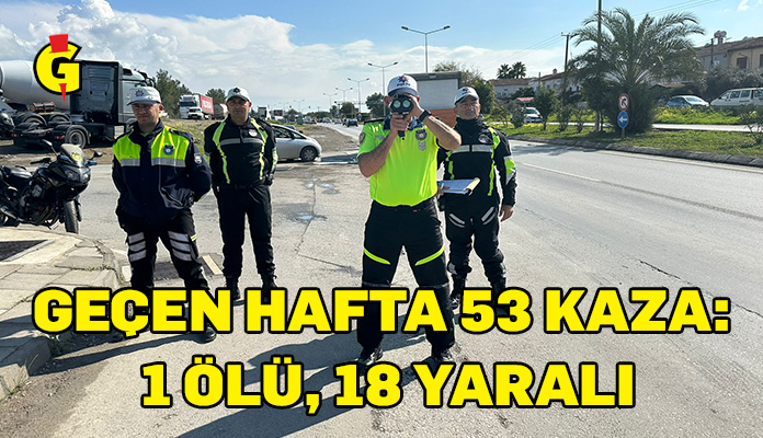 KKTC’de geçen hafta 53 trafik kazası meydana geldi. Bu kazalarda bir kişi hayatını kaybetti, 18 kişi yaralandı.