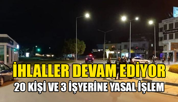 Sokağa çıkma yasağını ihlal eden 20 kişi ve kapatma zamanına uymayan 3 işyeri sahibi hakkında yasal işlem başlatıldı.