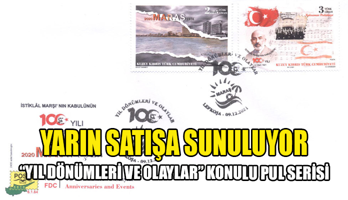 Posta Dairesi, İstiklal Marşı’nın kabulünün 100’üncü yılı ve Kapalı Maraş’ın halkın ziyaretine açılmasının birinci yıl dönümü dolayısıyla, “Yıl Dönümleri ve Olaylar” konulu pul serisi ve ilk gün zarfı çıkardı.