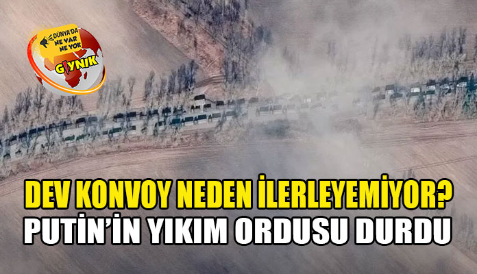 Rus ordusunun Ukrayna’nın başkenti Kiev’e yaptığı askeri sevkiyatın uydu görüntülerindeki beliren 64 kilometrelik konvoy durdu. ABD’li yetkililer, dev birliğin yakıt ve gıda sorunu nedeniyle durduğunu belirtiyor.