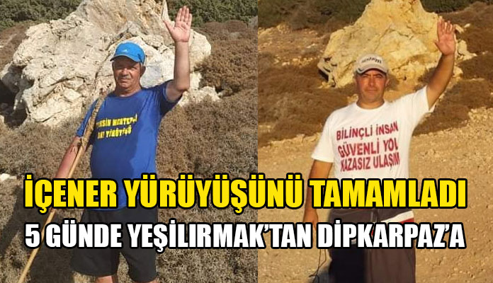 Aslen Piskobulu olup Bursa’da ikamet eden 68 yaşındaki Rahmi İçener, trafik kazalarına dikkat çekmek için Yeşilırmak’tan Dipkarpaz’a gerçekleştirdiği Tahsin Mertekçi Anı Yürüyüşünü 5 günde tamamladı. Rahmi İçener yürüyüşünü, Mertekçi’nin noktaladığı yerde tamamladı.