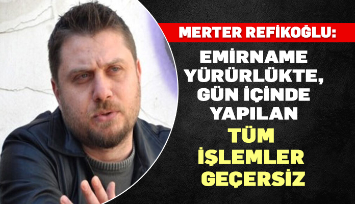 Refikoğlu: “Emirname yürürlükte, gün içinde yapılan tüm işlemler geçersiz”