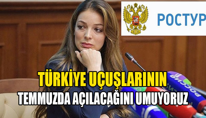 Doguzova, Rus NTV’ye yaptığı açıklamada Türkiye’de vaka sayılarından düşüş olduğunu belirterek, “Türk meslektaşlarımızın aktardığı bu olumlu dinamiklerin devam etmesini ve en azından yaz tatili sezonunun ortasında, temmuz ayına kadar yurttaşlarımızın Türk tatil beldelerine gidebilme fırsatına kavuşmasını umuyoruz” dedi.