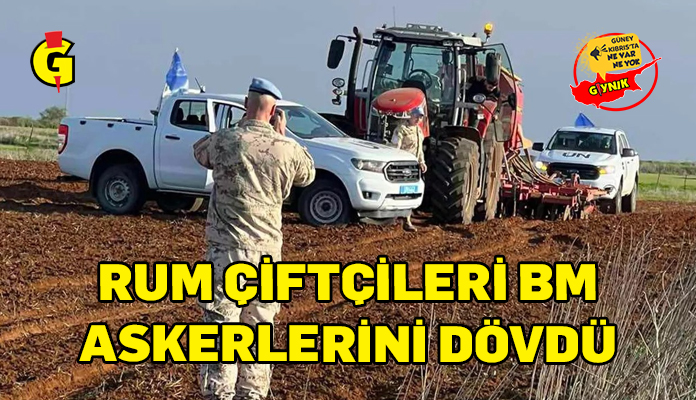 Rum çiftçilerin dün, ara bölgede, Birleşmiş Milletler Barış Gücü (UNFICYP) mensubu iki askeri dövdüğü ve askerlerden birinin hafif yaralandığı; BM’ye ait üç aracın hasara uğratıldığını bildirildi.