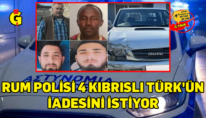 Rum polisinin, 6 Ocak’ta yaşanan olaylarda ölen 24 yaşındaki Pakistanlıyla ilgili yürüttüğü soruşturma çerçevesinde, olayla bağlantısı bulunduğu ileri sürülen 4 Kıbrıslı Türk’ün iadesini talep ettiği bildirildi.