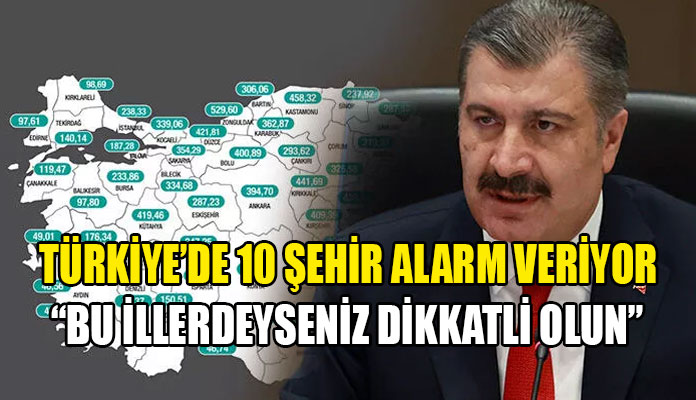 Sosyal medya hesabından açıklama yapan Bakan Koca, “18-24 Eylül arasında, 100.000 kişi içinde BİR HAFTALIK TOPLAM yeni Covid-19 vaka sayısı neydi? Yaşadığınız, gidip geldiğiniz ildeki durumu haftalık İnsidans haritamızdan öğrenebilirsiniz. 18-24 Eylül arasında vaka yoğunluğu bir önceki haftaya göre EN ÇOK ARTAN 10 İLİMİZ: Zonguldak, Kırşehir, Düzce, Bursa, Bolu, Kars, Bartın, Kütahya, Kocaeli, Bilecik. Bu illerden birindeyseniz şimdi daha da dikkatli olmalısınız. Nihai çözüm aşı! Tedbirler vazgeçilmez.” ifadelerine yer verdi.