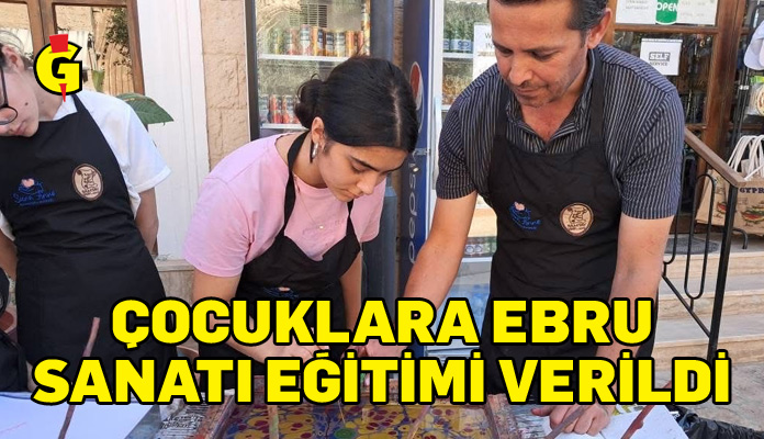 Vakıftan yapılan açıklamaya göre, uzman eğitmenler eşliğinde düzenlenen etkinlikte çocuklar ebru tekniklerini öğrenerek kendi desenlerini oluşturdu.