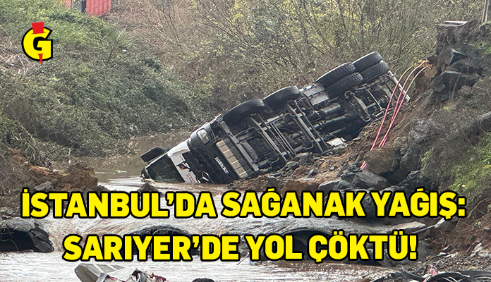 İstanbul’da kuvvetli yağış nedeniyle Sarıyer’de yol çöktü. Yolun çökmesi sonucu pikap ile kamyonet dereye düştü.