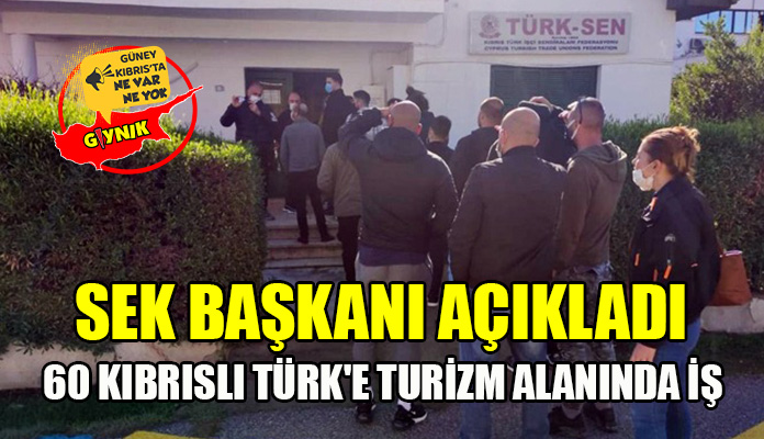 Kıbrıs Rum İşçi Federasyonu SEK Başkanı Andreas Matsas, Güney Kıbrıs’ta turizm alanında faaliyet gösteren bir şirketin 60 Kıbrıslı Türk’ü işe alma kararını sendikaya bildirdiğini açıkladı.