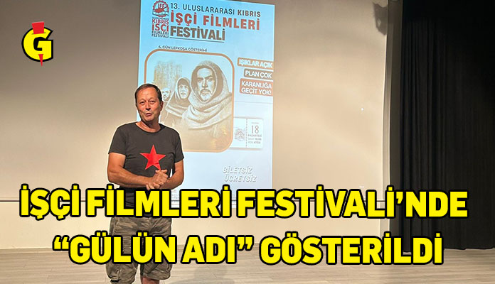 13. Uluslararası Kıbrıs İşçi Filmleri Festivali'nde dün “Gülün Adı” isimli filim gösterildi. Kıbrıs Türk Amme Memurları Sendikası Eğitim Sekreteri Muzaffer Sevim, film gösterimi öncesi yaptığı konuşmada, "Çok küçük gibi görünen sorunlar karşısında, sessiz kalırsak, biz ilericiler, devrimciler ve aydınlar, unutmayalım ki sonrasında çok daha büyük sorunlarla mücadele etmek zorunda kalacağız.” dedi.