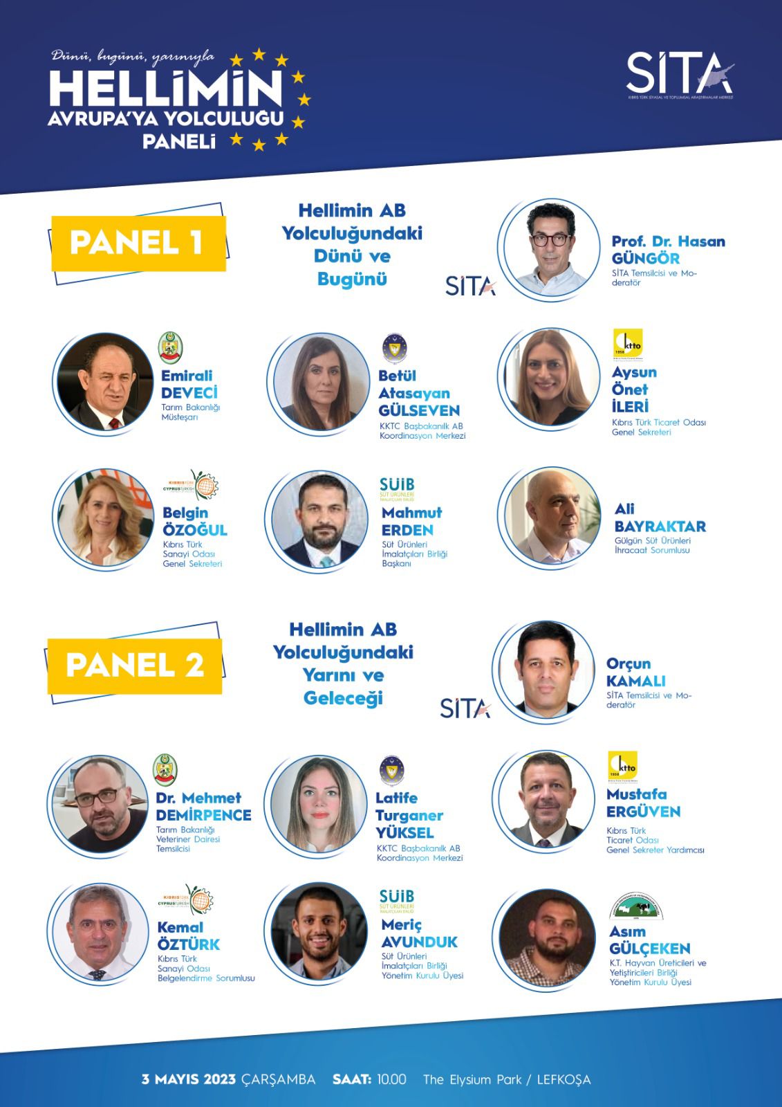 Başbakanlık AB Koordinasyon Merkezi, KKTC Tarım Bakanlığı, Kıbrıs Türk Ticaret Odası, Kıbrıs Türk Sanayi Odası, Süt İmalatçıları Birliği, Hayvan Üreticileri ve Yetiştiricileri Birliği temsilcilerinin yer alacağı ve arka arkaya gerçekleştirilecek 2 panel şeklinde organize edilen etkinlikte moderatörlük görevlerini SİTA adına Prof. Dr. Hasan Güngör ve Orçun Kamalı üstlenirken; Çiğdem Duvarcı da etkinlikte sunucu olarak görev alacak.