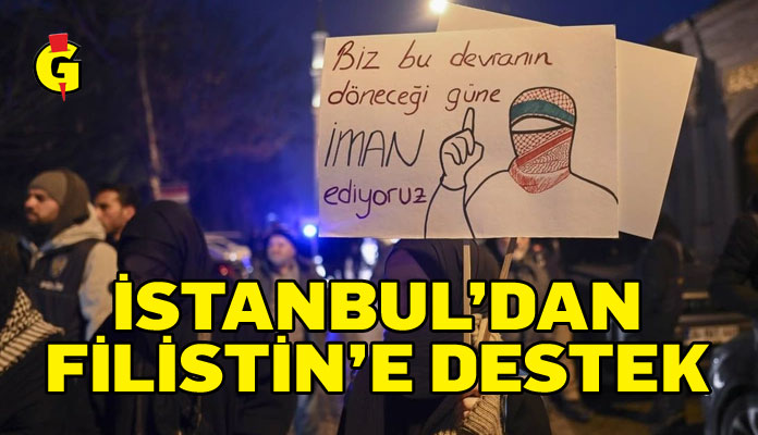 Yürüyüşte, Galata Köprüsü’nde Gazze’de devam eden zulme karşı dünyaya Filistin’e destek mesajı verildi.