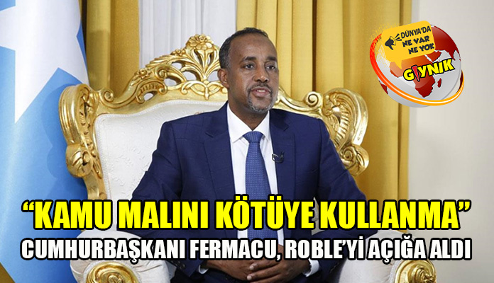 Somali Cumhurbaşkanı Muhammed Fermacu, Başbakan Muhammed Hüseyin Roble ve Deniz Kuvvetleri Komutanı Abas Amin Ali’yi, “yolsuzluk” ve “kamu malını kötüye kullanma” suçlamasıyla açığa aldı.
