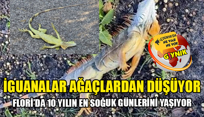 ABD’nin doğu yakasındaki Florida eyaletinde, sıcaklıkların son 10 yılın en düşük seviyesine gerilemesi nedeniyle vücutları soğuyan iguanaların ağaçlardan düştüğü bildirildi.