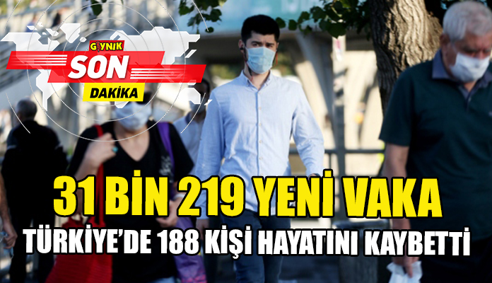 Türkiye’de son 24 saatte 176 bin 656 COVID-19 testi yapıldı, 31 bin 219 kişinin testi pozitif çıktı, 6 bin 514 yeni hasta belirlendi, 188 kişi hayatını kaybetti.