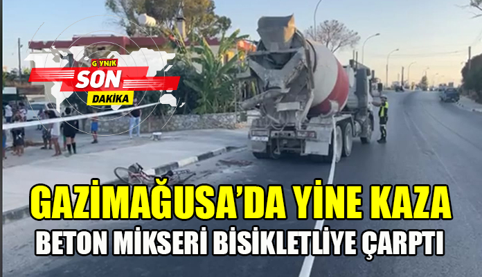Bugün saat 18:10 sıralarında, Gazimağusa’da 15 Ağustos Bulvarı üzerinde, Hüsnü Aykut (E-43), yolun solunda park halinde bulunan kullanımındaki JE 377 plakalı beton mikseri ile batı istikametine doğru hareket ettiği sırada o esnada aynı istikamete doğru bisikleti ile seyreden Yeter Kayhan (K-67)’a çarpmıştır.
