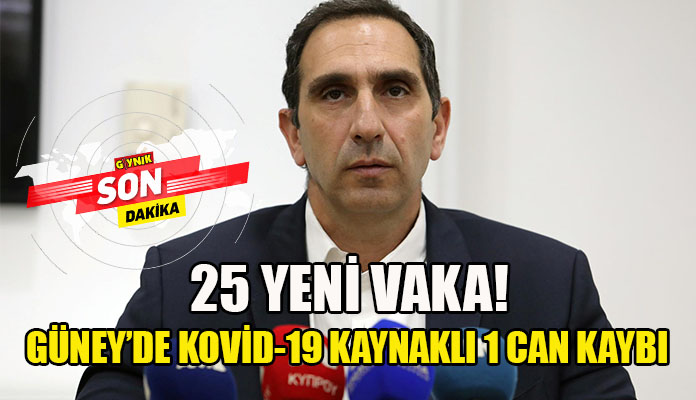Güney Kıbrıs Sağlık Bakanlığı, 25 yeni pozitif vakaya rastlandığını ve 1 kişinin virüs nedeniyle hayatını kaybettiğini açıkladı.