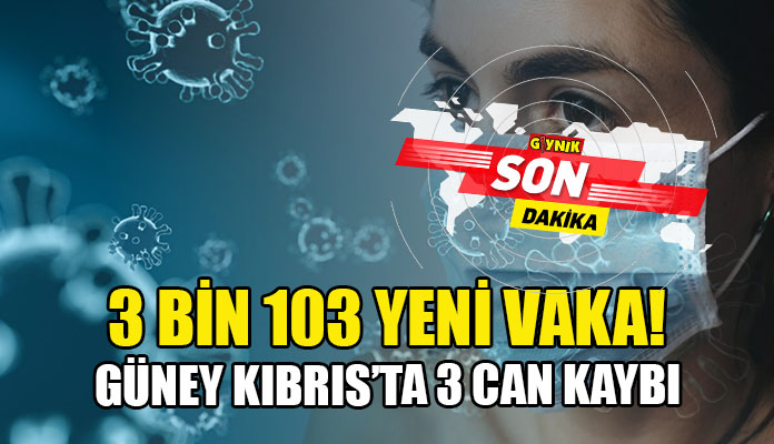 Güney Kıbrıs’ta Covid 19’dan 3 kişi hayatını kaybederken 3 bin 103 yeni vaka belirlendi.