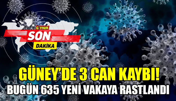 Son Dakika! Güney’de 3 can kaybı ve 635 yeni vaka