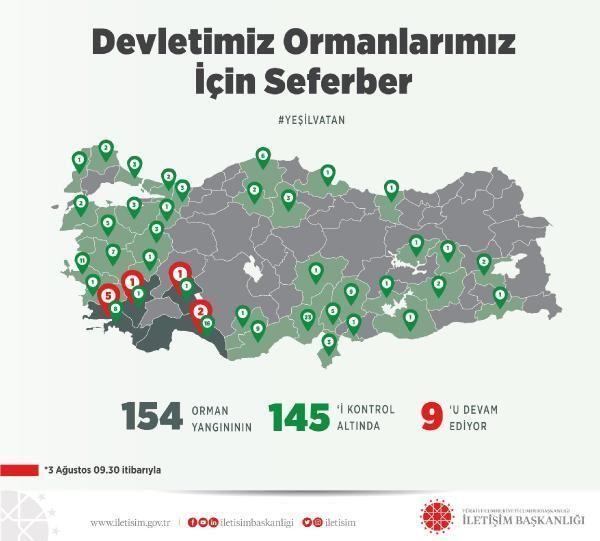 Altun, “Planlı ve gayretli çalışmalar neticesinde 156 yangının 147si kontrol altına alındı. Kurumlarımız eş güdüm içerisinde kriz bölgelerindeki çalışmalarını aralıksız sürdürüyor” dedi.