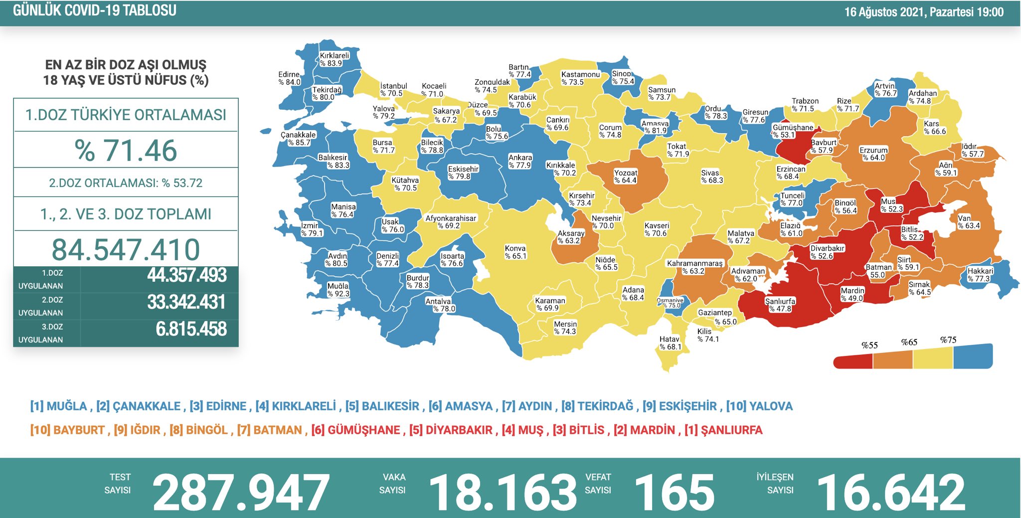 Türkiye’de bugün 18.163 vaka tespit edilirken, 165 yurttaş hayatını kaybetti.