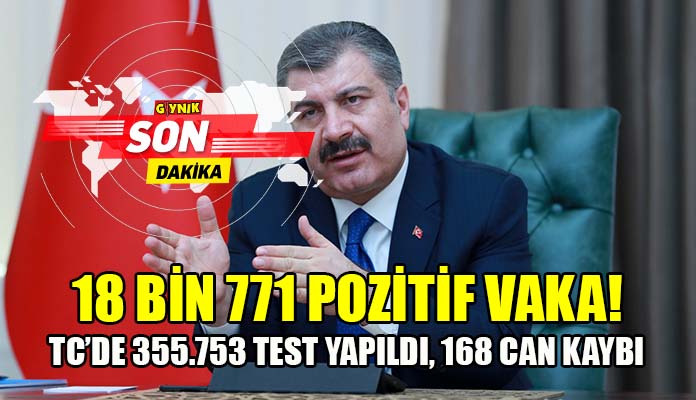 Buna göre, son 24 saatte 355 bin 753 Kovid-19 testi yapıldı, 18 bin 771 kişinin testi pozitif çıktı, 168 kişi yaşamını yitirdi, iyileşenlerin sayısı 21 bin 605 oldu.
