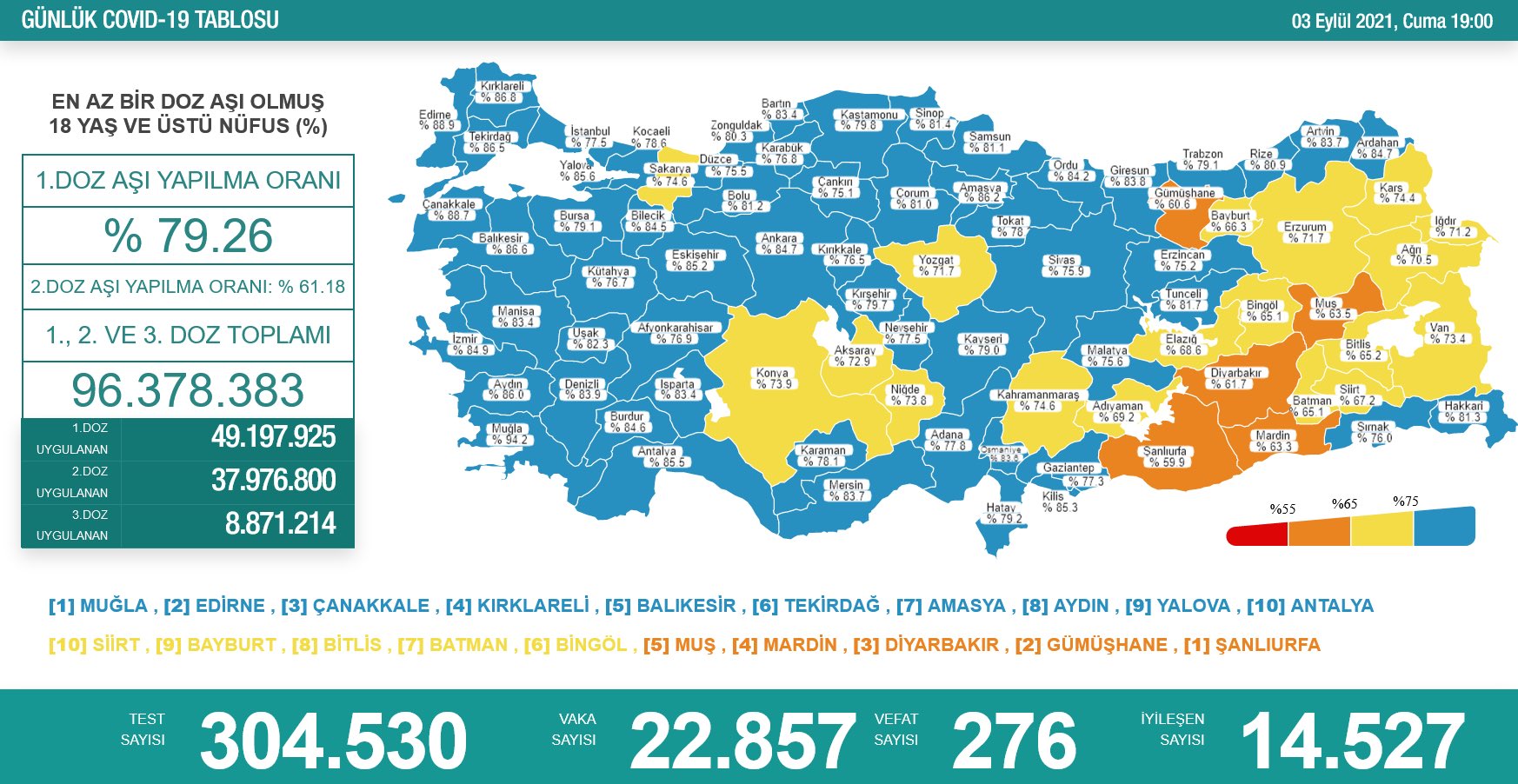 “PAZARTESİ okullar açılıyor. Yüz yüze ve kesintisiz sürecek bir eğitim yılı için kararlıyız. Şimdi bizlerle birlikte çocuklarımızın, gençlerimizin de gözü bu tabloda: 22.867 yeni vaka, 276 can kaybı! Henüz aşı olmamışsanız, dışarıda maskesizseniz haklı bazı soruları var.”