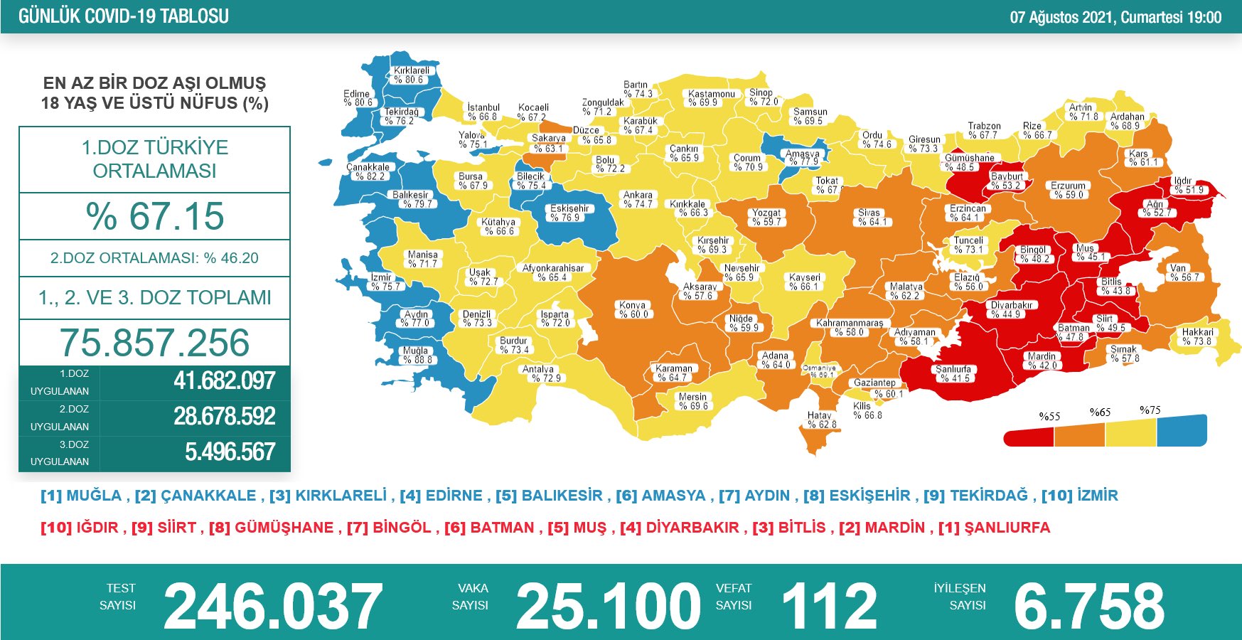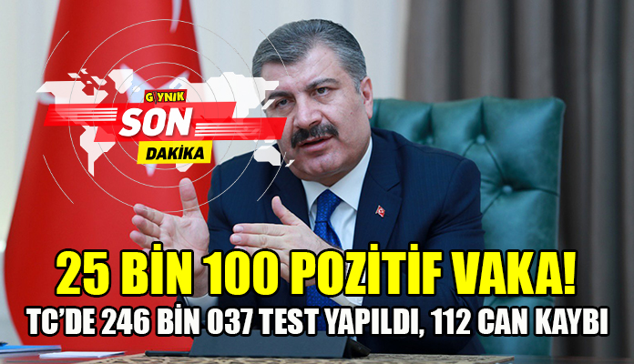 Türkiye’de bugün 25.100 vaka tespit edilirken, 112 kişi hayatını kaybetti.