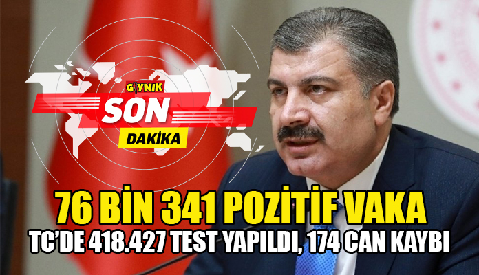 Buna göre, son 24 saatte 418 bin 427 Kovid-19 testi yapıldı, 76 bin 341 kişinin testi pozitif çıktı, 174 kişi yaşamını yitirdi, iyileşenlerin sayısı 82 bin 203 oldu.