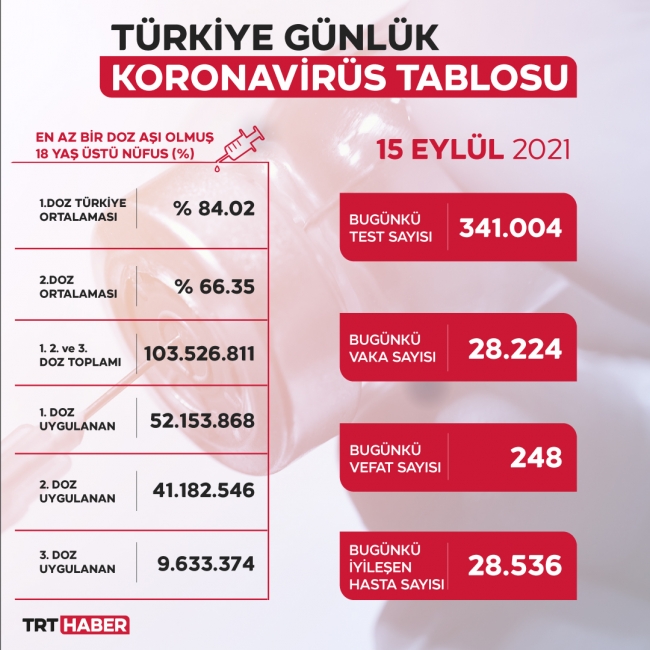 Son 24 saatte 28 bin 224 yeni vaka tespit edildi, 248 kişi hayatını kaybetti, 28 bin 536 kişi sağlığına kavuştu.
