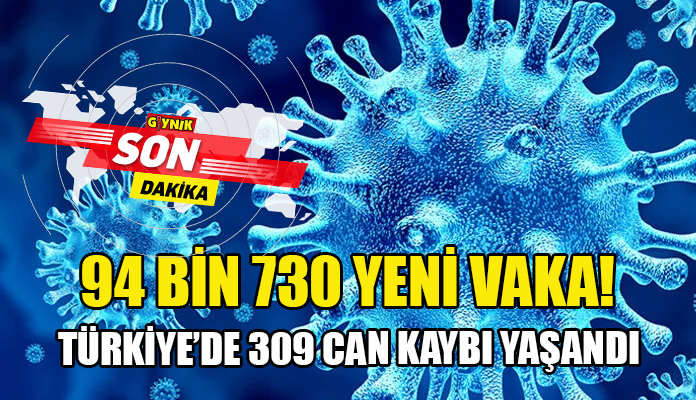 Türkiye’de son 24 saatte 461 bin 955 Covid-19 testi yapıldı, 94 bin 730 kişinin testi pozitif çıktı, 309 kişi yaşamını yitirdi.