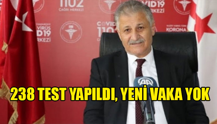 Sağlık Bakanı Dr. Ali Pilli, son 24 saatte yapılan test sayısının 238 olduğunu, pozitif vakaya rastlanmadığını açıkladı.