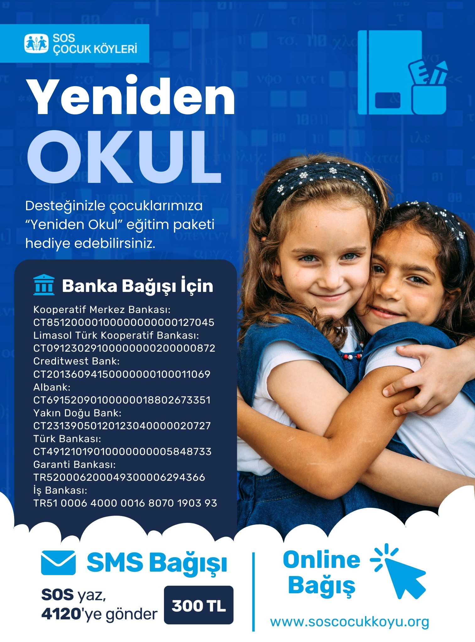Yeni akademik yıl öncesinde SOS Çocukköyü Derneği’nden bakım ve destek alan 146 çocuk ve gencin eğitim ihtiyaçları hazırlıklarını desteklemek için bağış seçenekleri şöyle:
