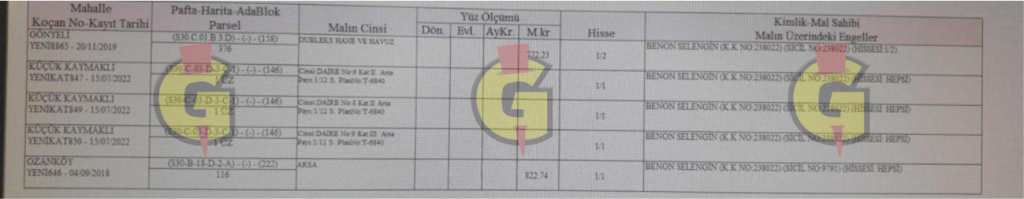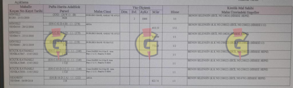 Sosyal medya hesabından açıklamada bulunan Selengin; GIYNIK’ın belgelerleriyle yayınladığı mülklerin kendisine ait olmadığını söylerken; kendisi ve ailesi üzerine toplamda 9 mülk olduğunu iddia etti.