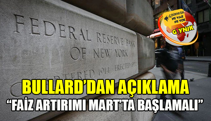 FOMC’de bu yıl oy hakkı bulunan Bullard bugünkü veriler ışığında Mart ayının faiz artışı için uygun olacağını ifade etti.