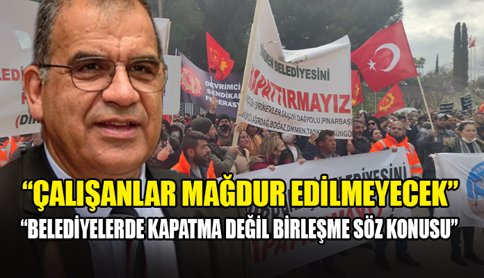 Sucuoğlu, bazı belediyelerin kapanmasının değil birleşmenin söz konusu olduğunu bu anlamda herhangi bir çalışanın işten durdurulması veya başka yere naklinin söz konusu olmayacağını vurguladı.